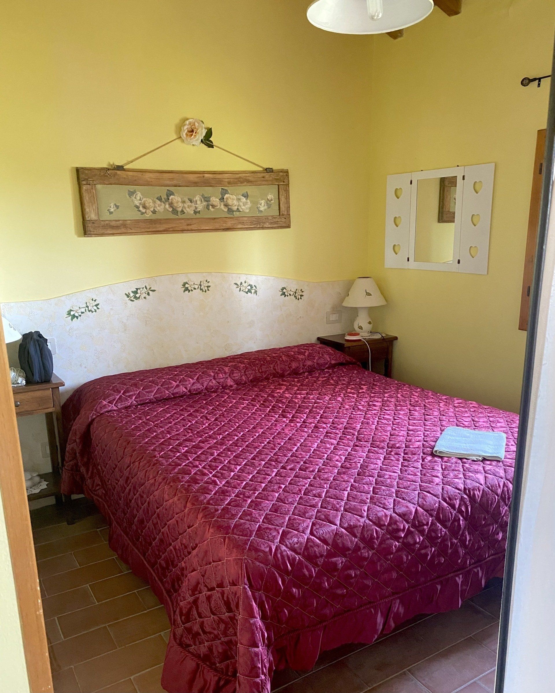La proprietaria, la Signora Patrizia, ci ha accolti come a casa, coccolati sin dal nostro arrivo con cordialialità e ogni premura. Ci ha messo a disposizione una splendida dimora, un appartamentino curato con gusto, con tutti i conforts, pulizia impareggiabile in un contesto da paradiso, con vista sulla campagna toscana fatta di vigneti e oliveti. Ad accogliervi vi è Kira, una simpatica cagnolina che vi da il benvenuto! La sera Patrizia vi prepara su richiesta dei gustosi taglieri di salumi tipici toscani, formaggi pecorini accomnpagnati da marmellate casareccie preparate da lei: gustosissime! Al mattino a darvi il buongiorno, oltre allo splendido panorama circostante fra le colline toscane, una abbondante e casareccia colazionbe con torte fatte in casa e tanta altra bontà ...Noi ritorneremo sicuramente perchè amiamo farci coccolare! Lo consigliamo per un soggiorno in un atmosfera familiare e casareccia in un contesto paradisiaco ...